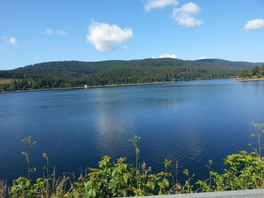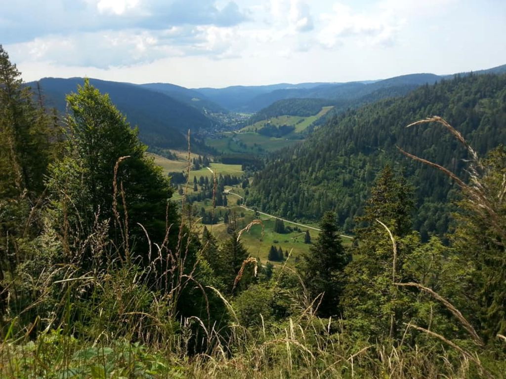 Feldburg. Lovely views down the valley. Walked 11 miles. Sat down by beautiful lake by the hills. Tried the curry sausage was nice and flavoursome